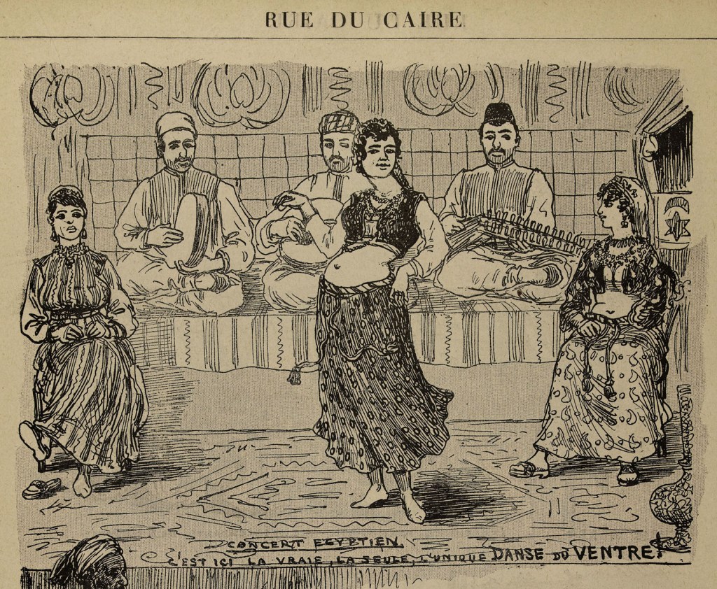 Hunt’s impressions of his eastern wanderings can be read as a self-fulfilling fantasy. Seeking an escape from the “affectations of civilised life”, the painter’s gaze focused on the “primitive”, the “simple” and the “beautiful”, that is, a match for his preconceived idea of a world untouched by history and progress. Over the course of the following decades, the orientalist imagery would be re-enacted and put on display at the World Exhibitions where curious Europeans could see and touch that imagined Other. Monumental and vernacular architectures and chaotic bazaars would be recreated in the Egyptian pavilions at the 1867 Paris Exhibition.24 The bustling streets in Cairo recorded by Hunt would take on a highly spectacularised representation in the Rue du Caire reconstructed on the Champs de Mars for the 1889 Exhibition. Built to resemble the older part of the city, the street was crowded with shops, stalls, and coffee shops where visitors could enjoy a commodified experience of the East complete with donkey rides. Behind the mock façade of a mosque was a coffee house where Egyptian girls danced for the voyeuristic pleasure of the western onlooker, an all too poignant image reinforcing stereotypes.25 Sexualised exoticism was a trope of much of nineteenth-century orientalist art and was heightened by the objectiveness of the licked finish and the plethora of authenticating details. Chesneau’s reference to the fellaheen woman’s “animal and vegetating existence” and the sexually charged interpretation of her profession – a courtesan or a slave – become admissible in the context of the orientalised remoteness. The classicising or allegorising filter in Hunt’s composition – not to mention her being fully clothed – prevented her from being seen an odalisque, though the painter’s obsession with the young model and her resistance to becoming an object on display may reveal a different form of violence.