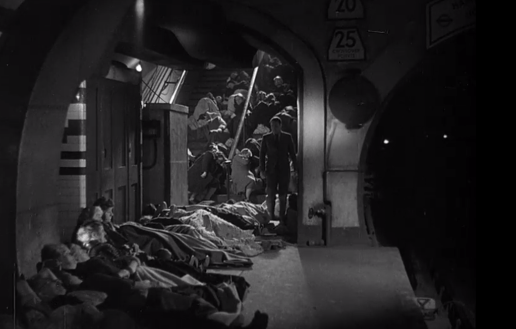 The footage from Humphrey Jennings’ Fires Were Started (1943) reminds viewers of the all-too familiar scenes of London burning during the blitz, introducing the work of firemen artists. The painters and designers who volunteered in the Auxiliary Fire Service, unlike other artists, took active part in the actions that they depicted.20 Their work was shown in exhibitions organised by the War Artists Committee, which, as the voiceover underlines, attracted people who had never been to an art gallery before.