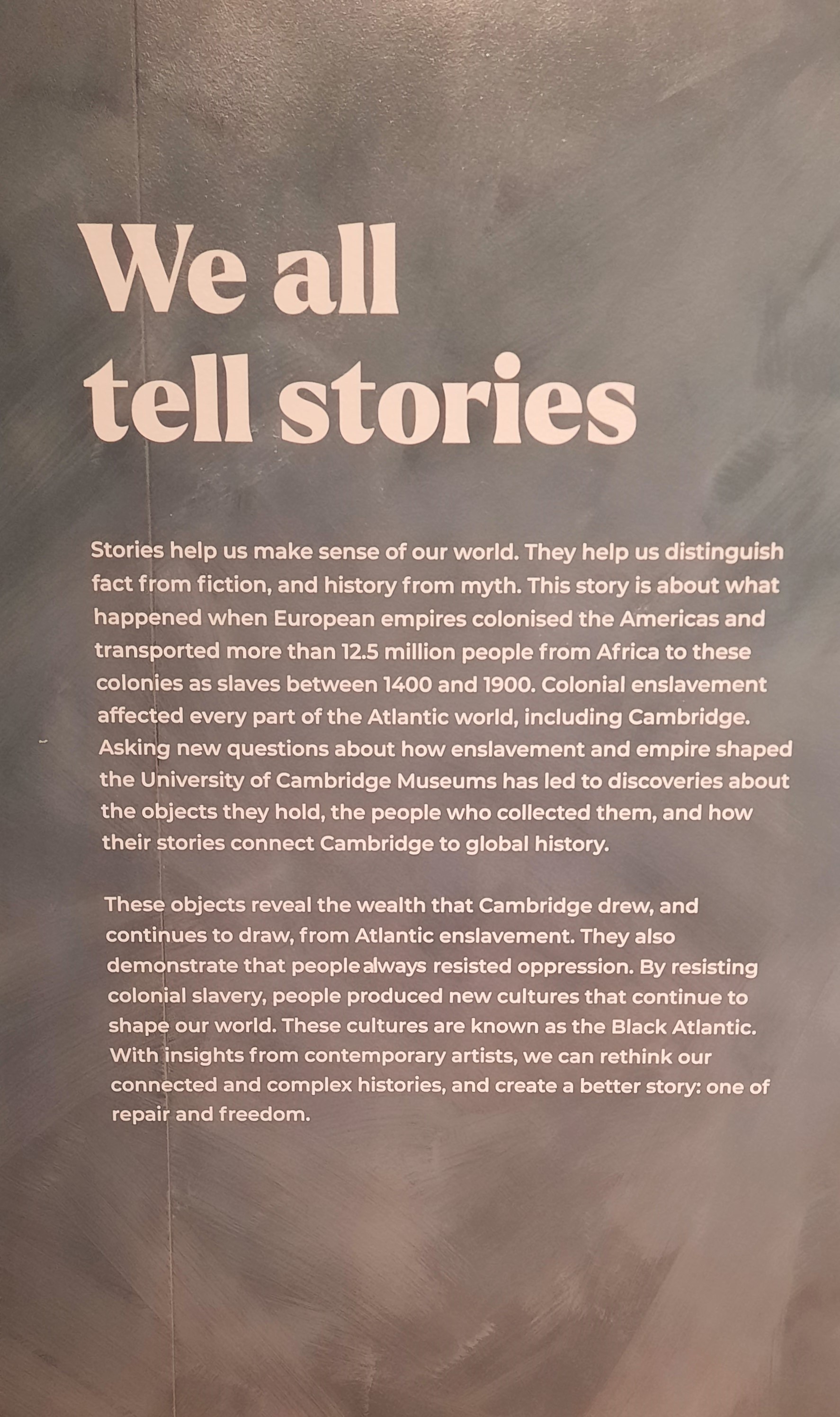 A selection of objects from Ghana, Suriname and the Caribbean offer a glimpse of the silenced or different (hi)stories before Atlantic enslavement. A testament to the richness and significance of Indigenous material and artistic culture, the presence of these objects in western collections may in some cases reveal the ties of their collectors to slavery. Though perhaps beyond the scope of the exhibition, provenance search often traces the history of Indigenous works as spoils of colonialism unlawfully acquired opening the debate on their restitution. Only a stone’s throw from the Fitz, the Museum of Archaeology and Anthropology holds 116 artefacts from the British sacking of Benin City in 1897 that are but one part of a hurtful legacy that the museum is committed to address and repair.15