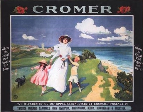 To the busy Prom, some people preferred more quiet, solitary walks on Cromer Ridge. Upon visiting the North Norfolk coast, journalist, playwright and travel writer Clement Scott (1841-1904) fell in love with the area and poetically captured its essence in a piece for The Daily Telegraph titled ‘Poppy-Land’ (1883). From the Lighthouse cliff, Scott poignantly observed the stark contrast between the metronomic schedule of the holidaymaking crowd and the calm, tranquil countryside surrounding Cromer: