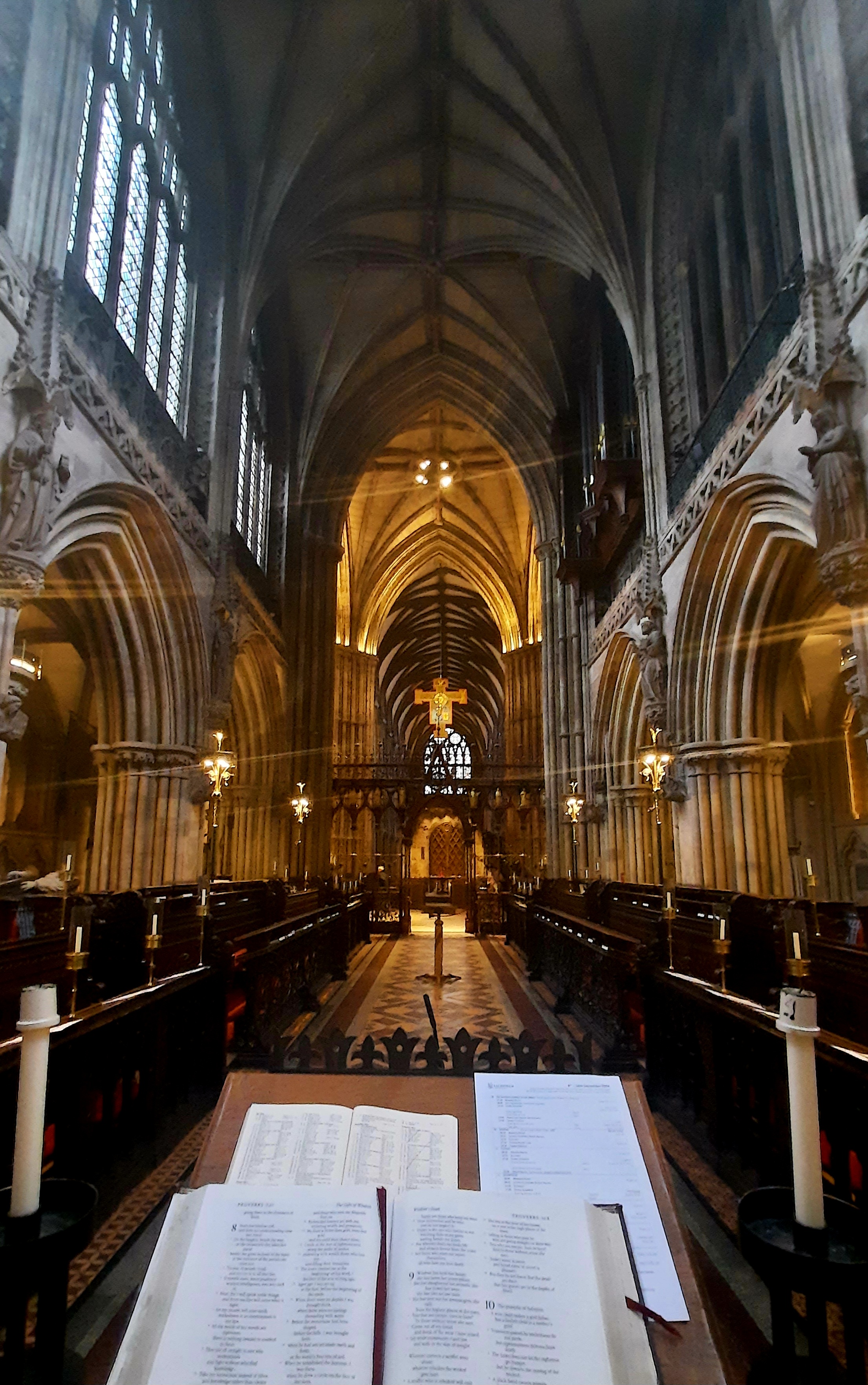 Lichfield cathedral undoubtedly stands as a testament to its troubled history of rise and fall. As Simon Jenkins observed, “Lichfield is not so much a mediaeval cathedral as a resurrected one”.2 The feeling of slight disappointment for its spurious character is quickly replaced by fascination with the Victorian approach to conservation. The overriding question must ultimately be – where does philology end and interpretation begin?