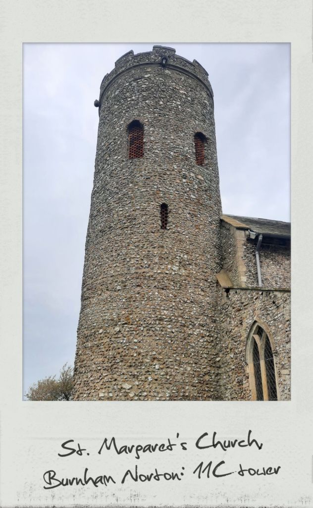 “To the student of the various styles of architecture there is an ample field for exploration, as the different churches will take him from the twelfth, through the thirteenth, fourteenth, and fifteenth centuries […]. I would particularly call attention to the Round Towers to be found in several parishes, and which are ascribed to the Saxon or Danish period: many of them were, after the Norman conquest, surmounted by an octagonal upper storey. Most of the Norfolk churches are constructed of flint, as very little building stone is found in the county […].”