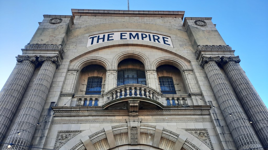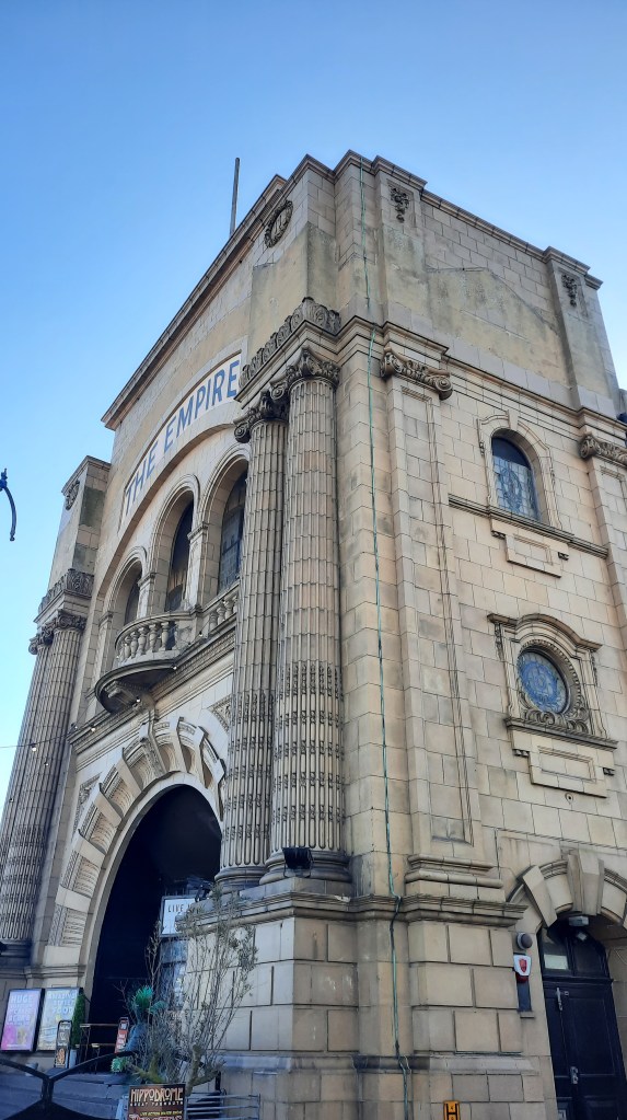 The Empire Theatre was designed by the architect Arthur S. Hewitt (active between 1875 and 1946) for E.V. Barr Ltd. who had previously commissioned him the Gem Theatre in 1908. To the Neo-Baroque style of the Gem, Hewitt preferred a more linear façade in the Renaissance style for the Empire. Flanked by two pairs of giant fluted Ionic columns, the arched entrance is surmounted by a loggia with a three-light window. The reliefs were made using Burmantofts vitreous terra cotta from Leeds Fireclay Company. The side of the building vividly recalls the classic geometry of Alberti’s Tempio Malatestiano. The severe and simplified attic, on the other hand, is possibly a nod to the Viennese Secession. Wonderfully eclectic.